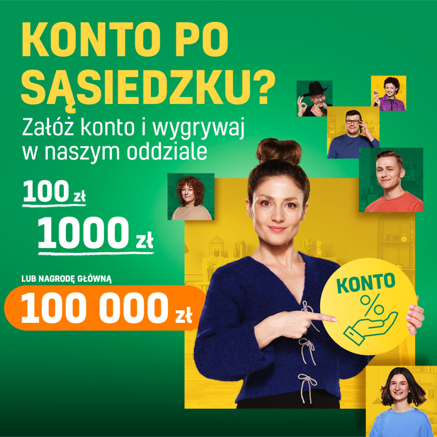 Organizatorem loterii „Wygrywaj po sąsiedzku” jest GRZEGRZÓŁKA LOTERIE z siedzibą w Gdańsku. Przyjmowanie zgłoszeń, zawieranie umów na wybrane rachunki oraz kredyty i lokaty na kwotę minimum 1 000 zł objęte Loterią w wybranych Bankach z Grupy BPS trwa od 26.03.2025 r. do 28.11.2025 r. z wyłączeniem dni wolnych od pracy. Loteria przeznaczona jest dla osób fizycznych, które ukończyły 18 lat. Lista Banków biorących udział w Loterii, produkty objęte Loterią oraz pozostałe warunki udziału i wykluczenia dostępne są w regulaminie.