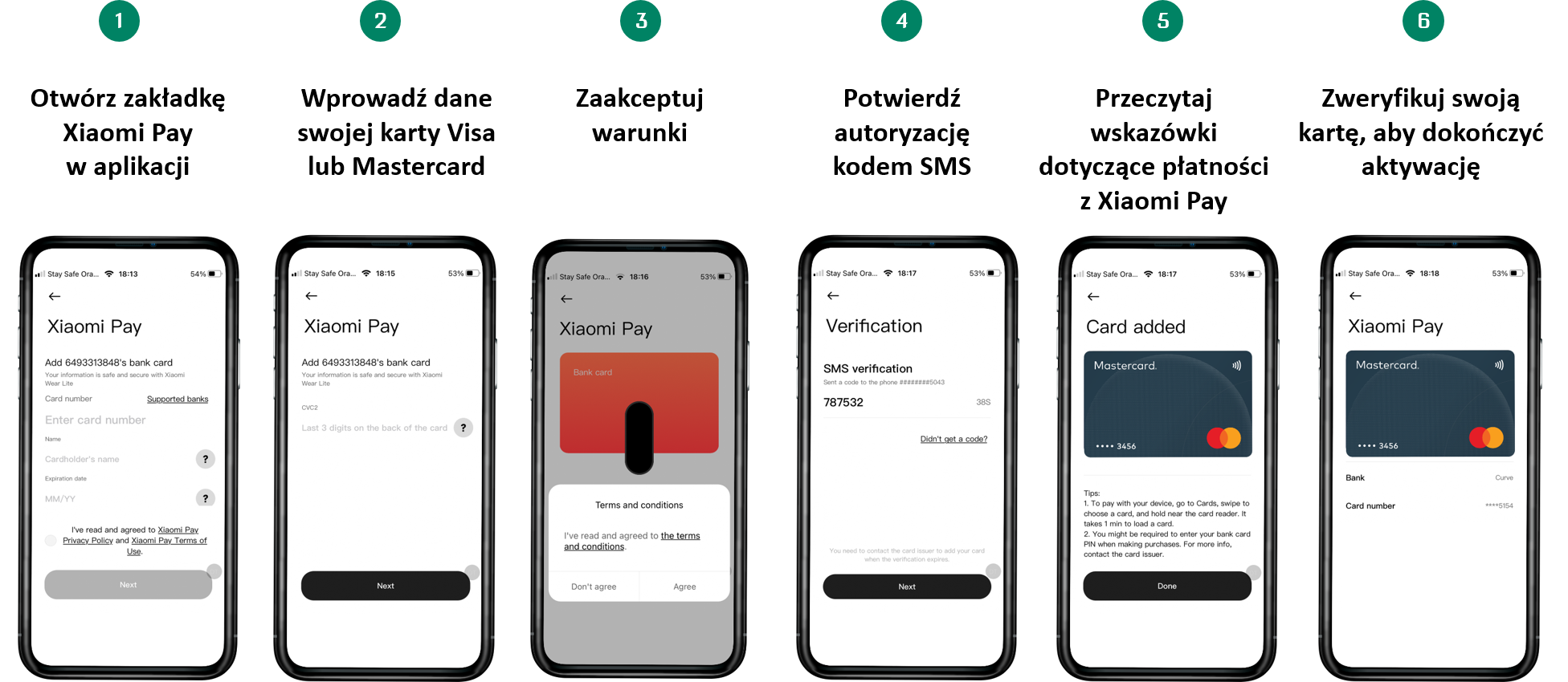 Jak dodać kartę Visa lub Mastercard® do Mi Smart Band 6 lub 7 NFC