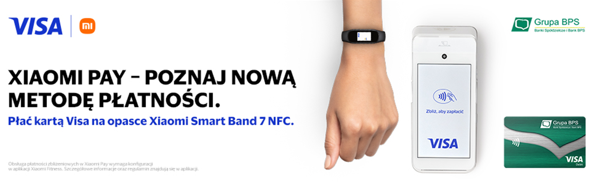 Usługa Xiaomi Pay działa z wieloma rodzajami kart kredytowych i debetowych Visa oraz Mastercard® które są wydawane w Zrzeszeniu BPS. Wystarczy dodać je do wirtualnego portfela w opasce Xiaomi, aby można było korzystać z zachęt i nagród zapewnianych w związku z korzystaniem z karty.
